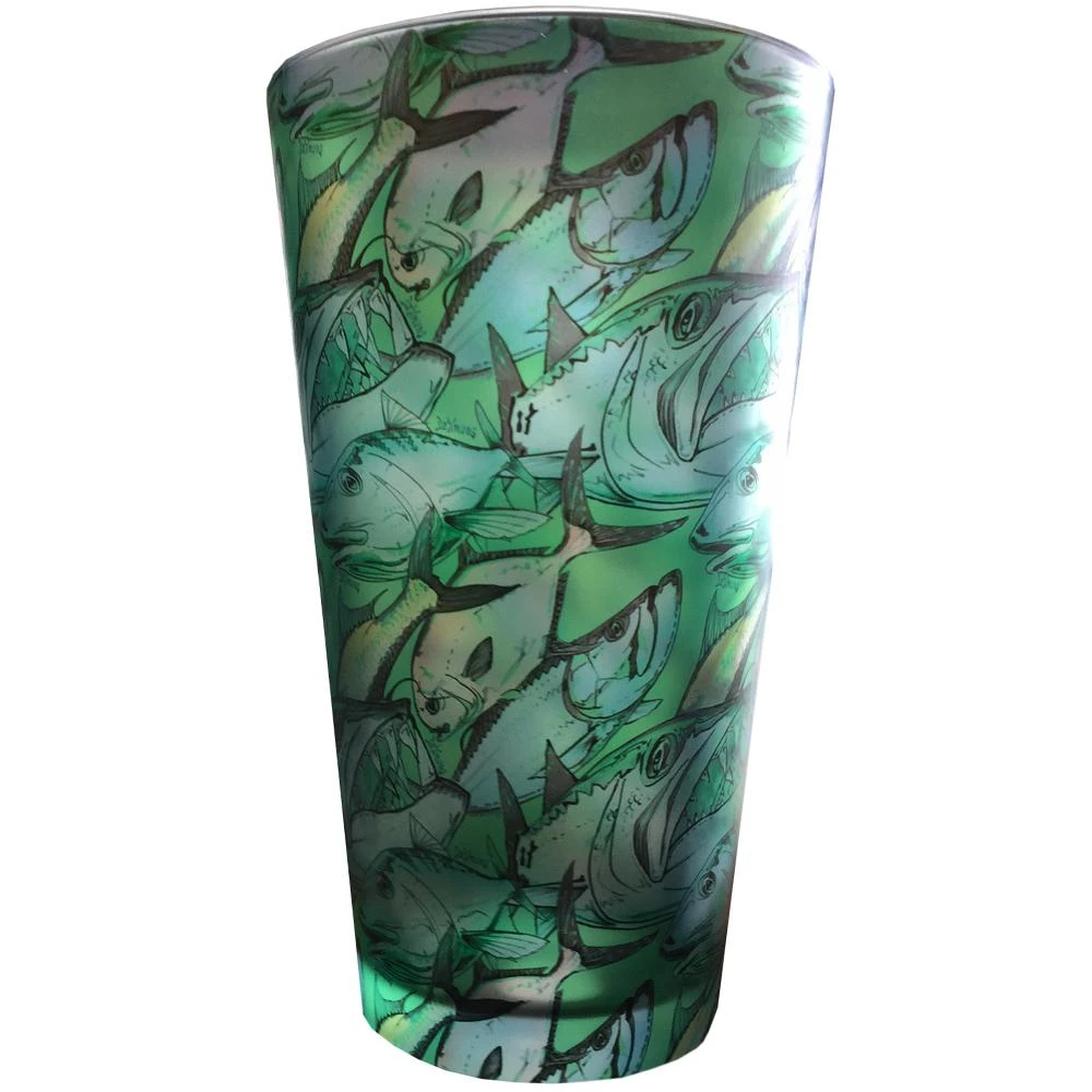 These heavy duty, 16 oz. Pilsner glasses showcase the best of DeYoung’s Abstract Fish Flank Series in a beautiful fully wrapped print within the glass. Available in Tarpon, Brown, Brook, Rainbow and Cutthroat. Buy as singles or as sets. Microwave safe, but not dishwasher recommended. Made in the USA.
