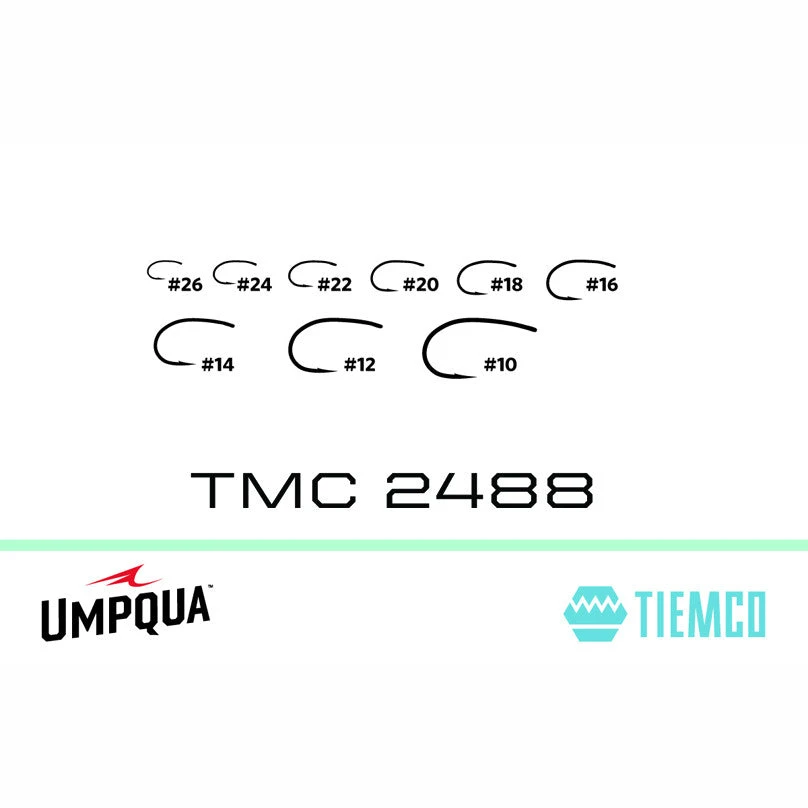 More than just a straight eye version of the classic TMC2487, the TMC2488 was designed to be a short shanked, curved hook that could provide a more open gape in smaller sizes. The fine wire design makes this hook a great fit for a wide variety of small to medium nymphs, midges, and emergers. Sold in packs of 25 or 100 hooks.